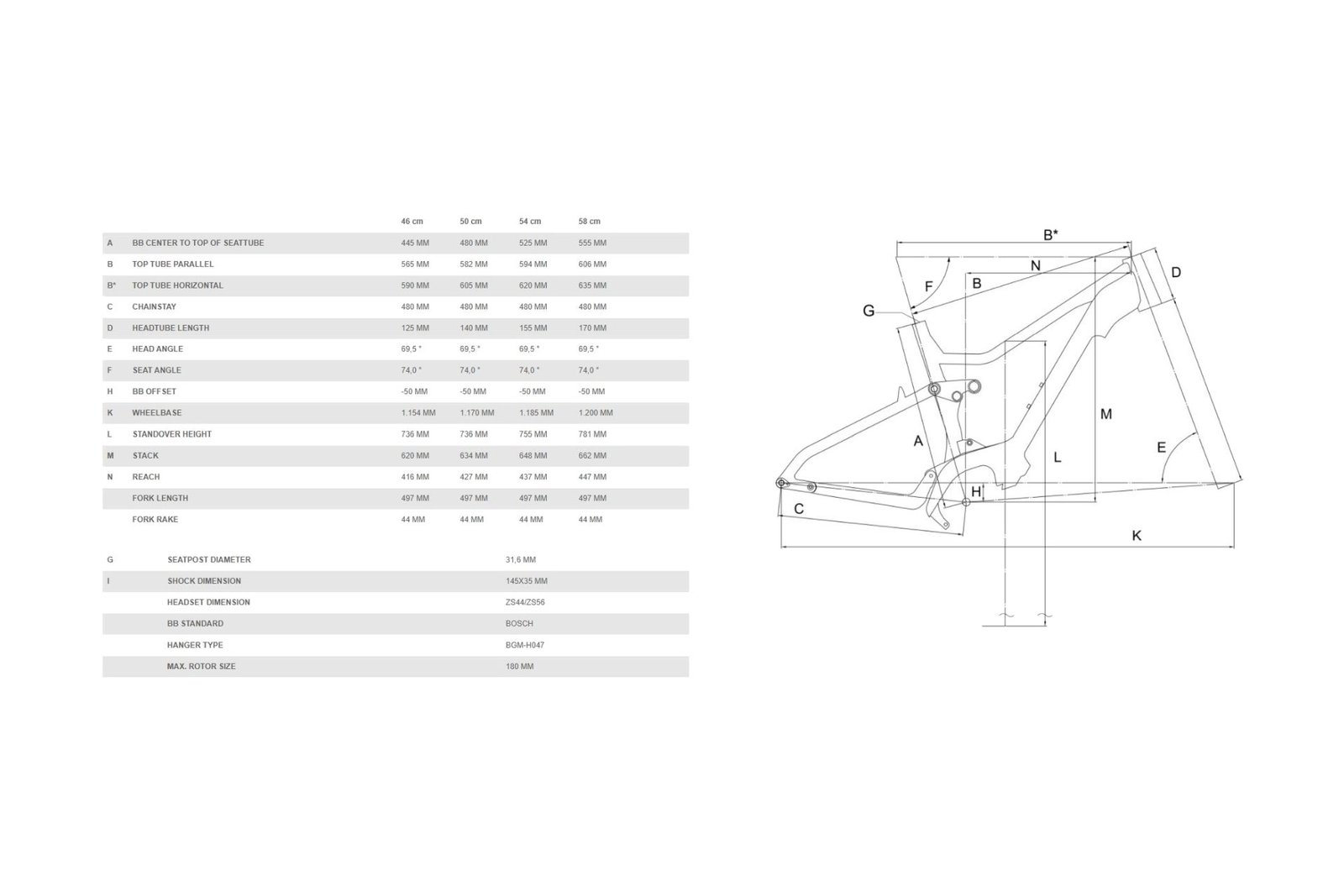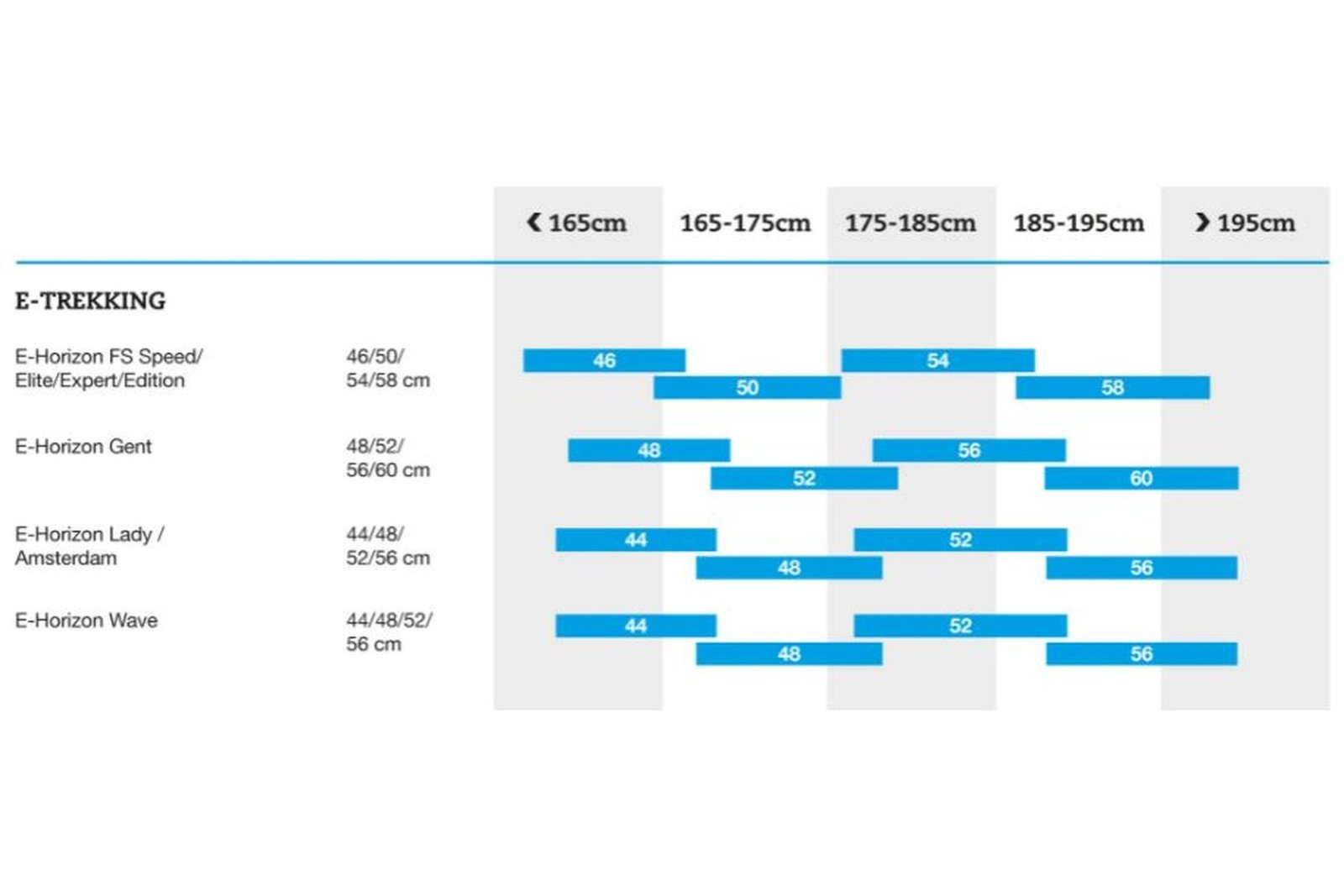 48 cm, 54 cm, 56 cm, 60 cm